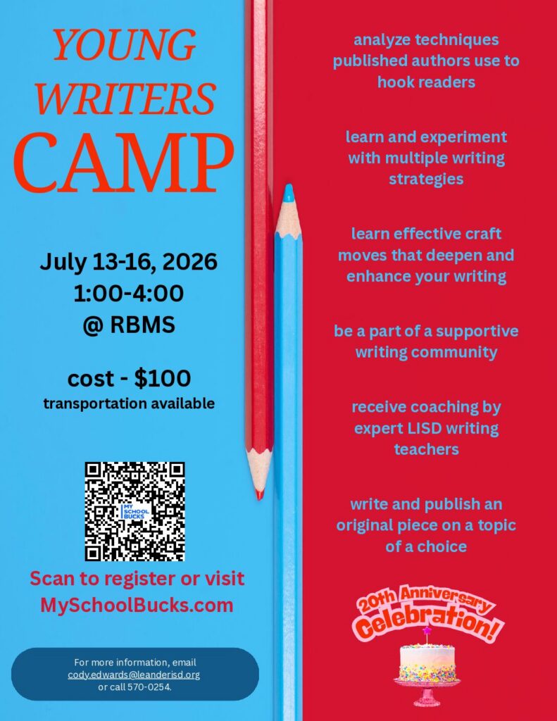 All camp instruction is sponsored by an approved Leander ISD teacher. Please select your camps carefully as there are no refunds.